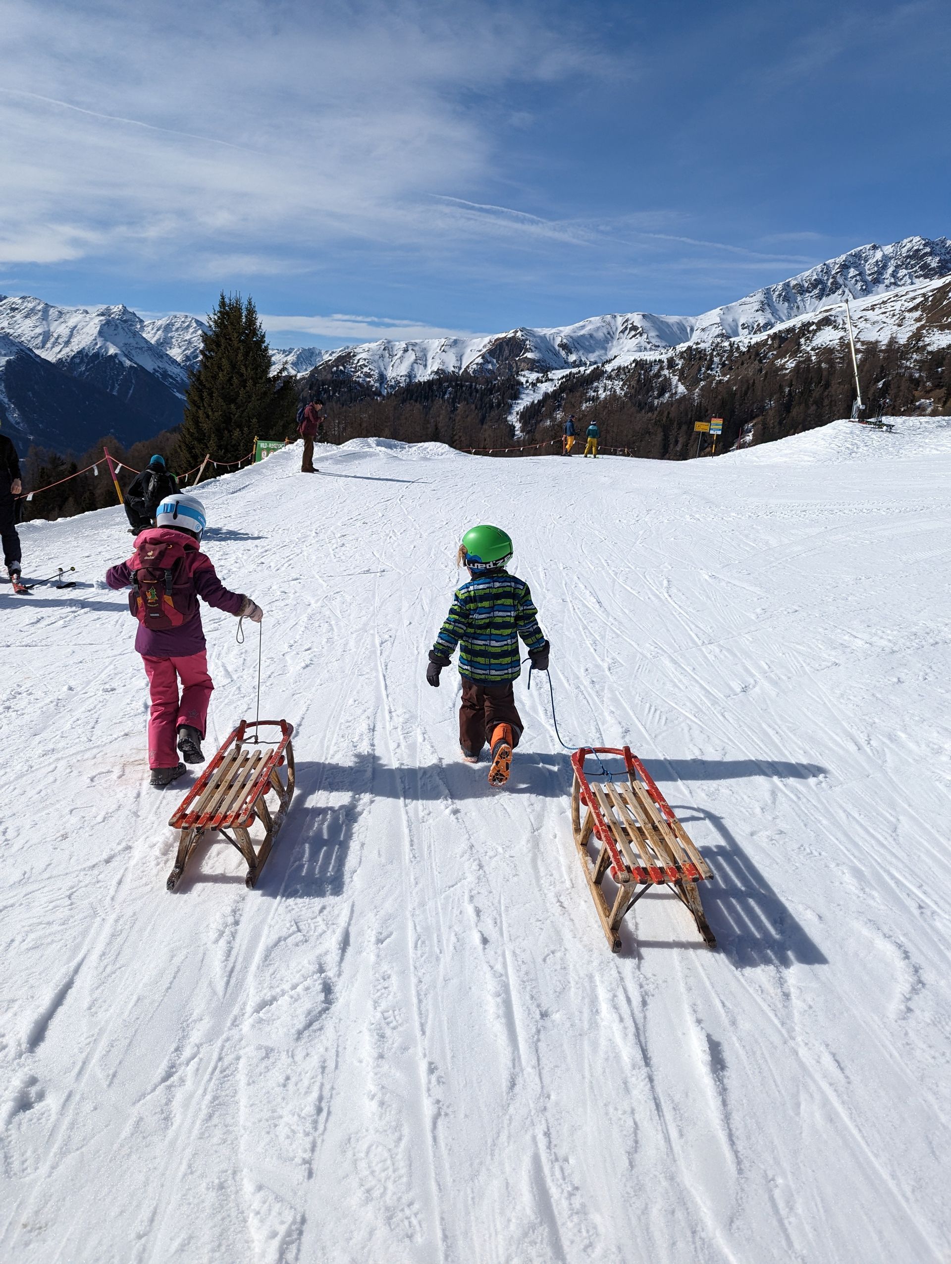 Tagsüber ist geplant, dass Jugendliche in Form von Skigruppen Kinderbetreuung anbieten (in Planung). Alle anderen organisieren sich fürs Schlitteln, Winterwandern, Wellnessen bis hin zu gemütlichem Nichts-Tun.